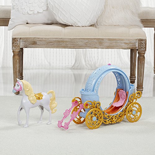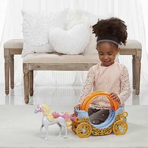 It's time for the royal ball, but how will Cinderella ever get there? With a turn of the top, this garden pumpkin becomes an elegant carriage fit for a princess! Your little dreamer will delight in making Cinderella's most magical movie moment come to life and then helping her hurry along to the ball in this enchanted transforming carriage. Don't forget to have her back before midnight! Doll sold separately. Copyright Disney Hasbro and all related terms are trademarks of Hasbro.Feature
