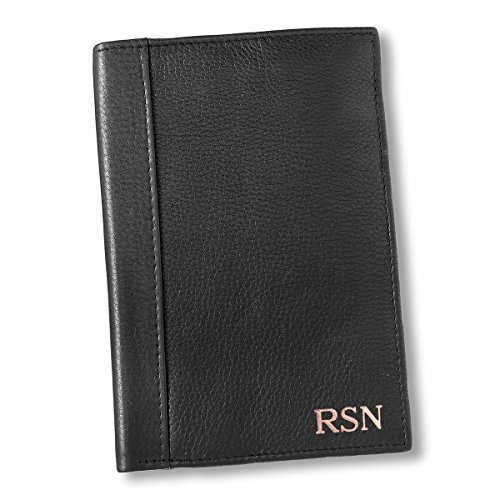 Product Description When considering travel gear gifts for him, choosing our Personalized Black Borello Passport Travel Wallet is an ideal solution to help make his international travel carefree. The stylish full-grain leather wallet with personalization has an attractive vertical profile with an inside passport pocket and several staggered slots for credit and business cards. His photo ID can be viewed easily through the bottom window slot. The personalized gift features unique radio frequency security blocking to prevent electronic pickpocketing, and compact designing to easily slip inside a vest pocket or carry-on bag. Select one of several debossing options of personalization for yourself, or as a considerate gift for husbands, fathers, brothers, or friends. The handcrafted leather passport wallet is built for durable, long-lasting use. 0