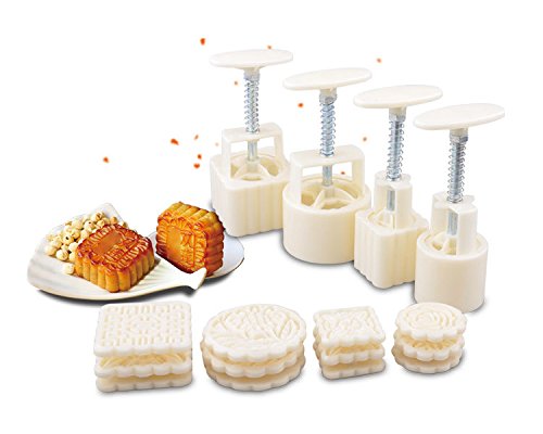 Lsushine Mid-Autumn Festival Hand-Pressure Moon Cake Mould With 12 Pcs Mode Pattern For 4 Sets