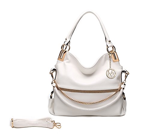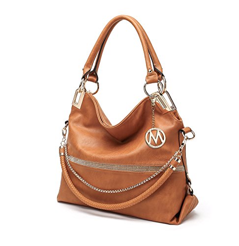 Product Description These designer handbags are part of the MKF Collection by Mia K. Farrow, they're manufactured of high quality faux leather giving it durability for long lasting use. Twister has a secure zip top closure to keep your daily essentials from falling out. MKF Collection handbags always keep their interiors very interesting, in this case this hobo handbag interior features a spacious compartment with two zippered pockets and slip in pockets. The exterior features a back zippered pocket, the exterior is also designed with luxurious gold tone embellishments and a removable MKF charm. Not to mention the two very comfortable twin top handles that have a handle drop of 12 in and its removable/adjustable shoulder strap that adjusts up to 48 in long to help boost up the look in your outfit of choice and giving you the potential to wear it as a crossbody handbag, a handbag or shoulder bag. The measurements of this hobo bag are 17 in L x 13 in H x 5.5 in D. This MKF Collection designer handbags will prompt you instant style no matter where you're standing. 0