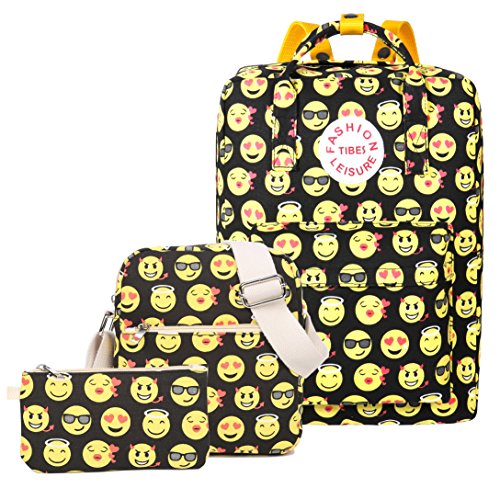 -. Title : Tibes Cute Canvas Kids Backpack Funny Emoji Backpack for Girls