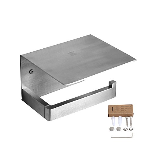 CRW Toilet Paper Holder Bathroom Tissue Roll Holder with Mobile Phone Storage Shelf SUS 304 Stainless Steel Brushed Wall Mount