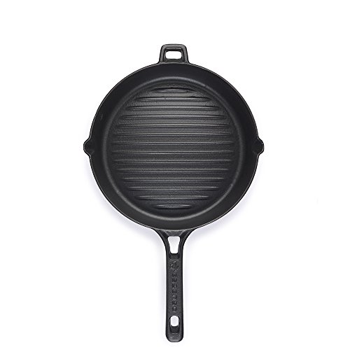 Specialty grill pan with a convex base, which maintains oil, odor and smoke free, healthy cooking.. With its superior heat retention and distribution, heats evenly and slowly; tolerates up to 500F. Four-layer durable exterior enamel that has a glazed unique look and an extreme resistance to cracking and chipping. The convex base leads the oil to the edge that can be filled with water. Water mixes with oil to prevent it from burning, producing odor and smoke. Authentic and traditional craftsmanship, combined with innovative design and highest quality anti-bacterial material. Bombe is made of specialty cast-iron products, using highest quality material and innovative design thinking. Its convex base is a breakthrough in the current cookware industry and is the pioneer of its kind, in terms of combining form and functionality in a perfect way. Essenso perfectly harmonizes modernity of cookware and tradition or culinary arts. Enjoy healthy and tasty meals. Whatever you are cooking, nutritional values and flavors will be maintained well. Bombe series is a perfect combination of design and functionality. This product features a dome-like structure at its base and a canal that surrounds the base. While cooking, oil drains off from the food and flows towards the canal. This way, the oil won't burn and stick on the food which is more healthy. The oil mixes up with the previously filled water at the canal. This prevents the odor and the smoke produced by the oil when cooked on a flat surface. Regardless to its dome shape, it still has excellent heat-absorption and transfer. Has a glossy multi-layer coating of enamel on the exterior with a distinctive look. Clean by softening it in warm water and then removing the residues with a non-scouring sponge. We recommend using silicone or wooden utensils. Dish washer detergents may damage it over the long term. Use on all stovetops. Enamel is a natural anti-bacterial material that provides healthy cooking and food storage.Feature