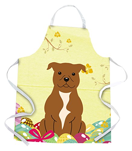 Caroline's Treasures Easter Eggs Staffordshire Bull Terrier Brown Apron, Large, Multicolor