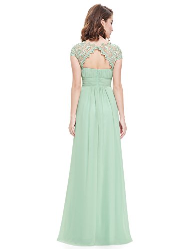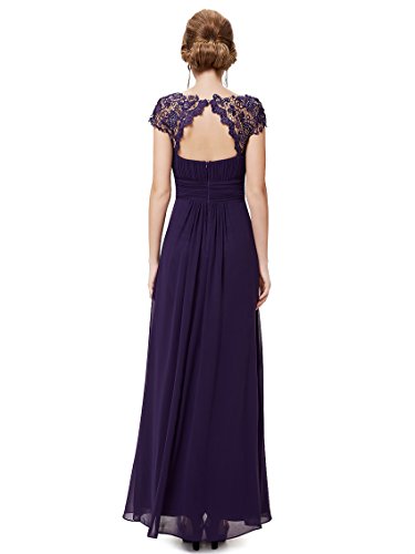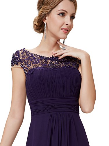 Elegant black chiffon evening dress with lacey cap sleeves. Perfect for your next formal occasion whether it be an evening party or even your turn as the mother of the bride or groom. Delicate lace and rhinestones decorate the neckline while the ruching in the bust and waist creates a figure flattering silhouetteFeature