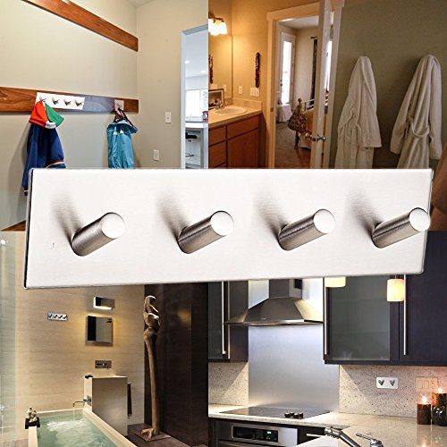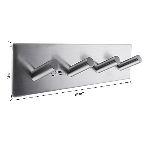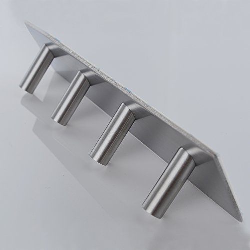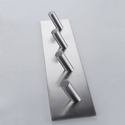 KES SUS 304 Stainless Steel 3M Self Adhesive Hook Key Rack 4-Hook Rail Garage Storage Organizer Stick On Sticky Bathroom Kitchen Towel Hanger Wall Mount Contemporary Style, Brushed Finish, A7063H4
