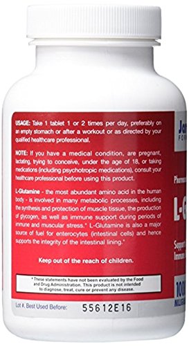 Studio : Jarrow Publisher : Jarrow Binding : Health and Beauty Product Description L-Glutamine - the most abundant amino acid in the human body - is involved in many metabolic processes, including the synthesis and protection of muscles tissue, the production of glycogen, and immune support during periods of immune and muscular stress.L-Glutamine is also a major source of fuel for enterocytes (intestinal cells) and hence supports the integrity of the intestinal lining 0