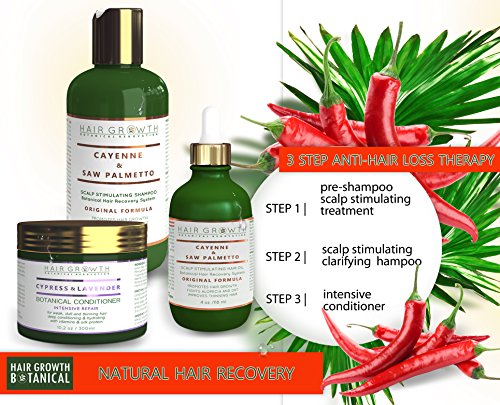 STEPS 1 & 2 Value Set: Natural Hair Growth Shampoo and Scalp Treatment For Hair Loss and Hair Thinning Prevention - Lab Formulated Alopecia and DHT Blocking Cayenne - Saw PalmettoFormula includes the strongest known botanical hair-loss fighting bio-active components contained in Saw Palmetto Oil and Capsaicin, derived from Cayenne (Chili Seed) Essential Oil.