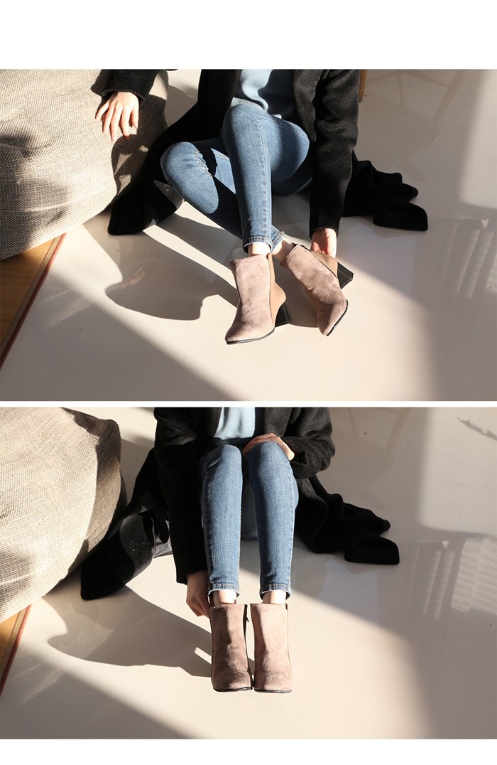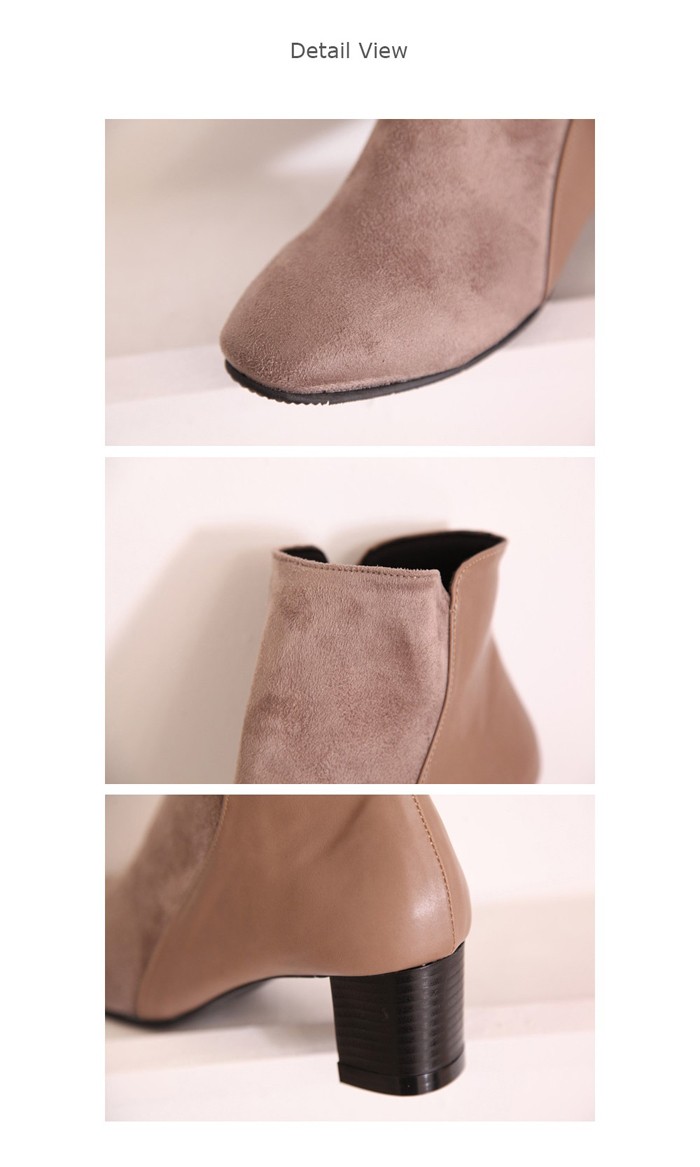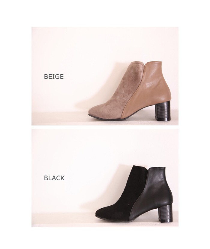商品名:ショートブーツ レディース バイカラー スエード調 太ヒール チャンキーヒール 2017 秋 冬 ファッション 靴 婦人靴
