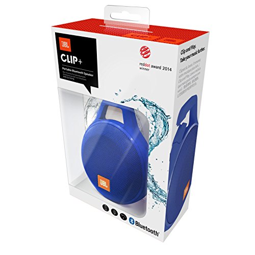 -. Binding : Electronics -. Brand : JBL -. Feature : Wireless Bluetooth Streaming - Wirelessly stream high-quality sound from your smartphone or tablet. Don't worry if there's no Bluetooth, plug the integrated 3.5mm audio cable into any device and enjoy your music all the same or use it to daisy chain another Clip+ for bigger sound. / Speakerphone - Take calls from your speaker with a touch of a button - crystal clear thanks to the noise and echo free speakerphone. / Built-in carabiner - Hook the Clip+ onto anything you see fit and take it on all your adventures. / Splashproof - Splashproof means no more worrying about rain or spills, you can even clean it with running tap water. Just don't submerge it. / Rechargeable Battery - Built-in rechargeable Li-ion battery supports up to 5 hours of playtime. -. Label : JBL -. Manufacturer : JBL -. PackageQuantity : 1 -. ProductGroup : Network Media Player -. ProductTypeName : PORTABLE_AUDIO -. Publisher : JBL -. Studio : JBL -. Title : JBL Clip+ Splashproof Portable Bluetooth Speaker