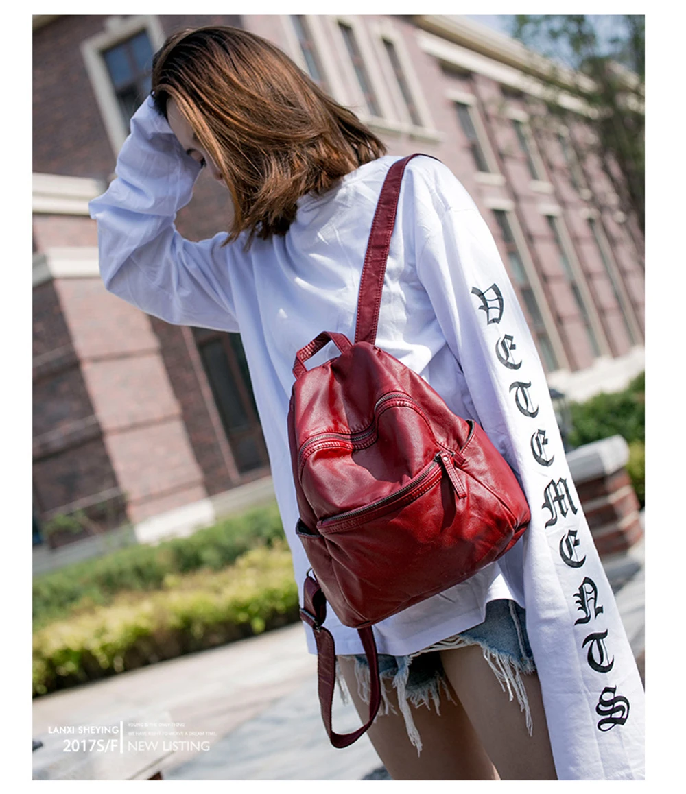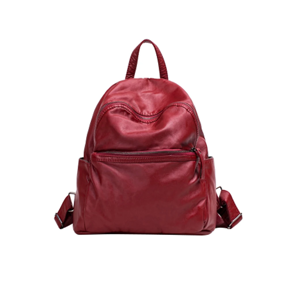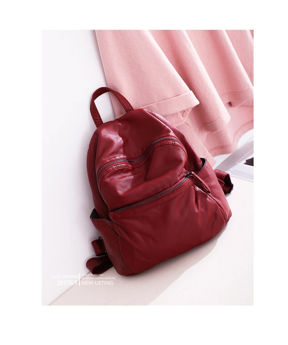 カジュアルバックパック女性の簡単なデザインソフトpuレザースクールバッグ女性バックパック大容量固体バックパックレディース