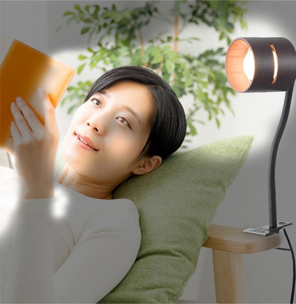 | 挟むだけで簡単に設置可能なクリップタイプのライト。アーム部分は自由な角度に曲げられるので、光を当てたい場所へ向きを変えることができます。 |