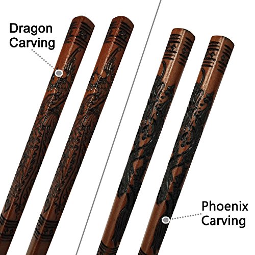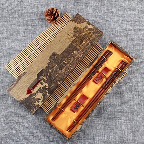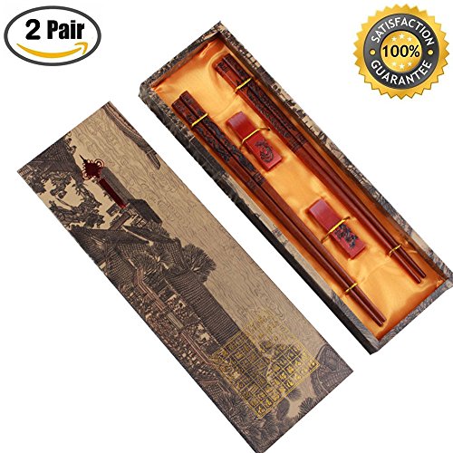 - ✔ [2 Pairs Elegant Chopsticks with Carving Design] - The upper part with dragon and phoenix carving design, increase the sense of elegant. Package include 2 Pairs chopsticks, 2 Rests and a classic style Carry Case