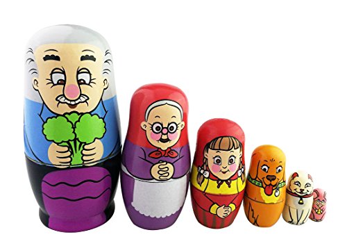 -. Feature : Sweet family theme:grandpa,grandma,little red riding hood,yellow dog,white cat and pink mouse / It's stoving varnish,so the color is brighter and looks glossier / Contains 6 dolls with decreasing size placed one inside the other to appear as one / Kids will love to play with it,enjoy the fun of taking them apart and reassembling / Ideal gift in birthday,christmas or any special day.Also you can use it as home/kids room decoration