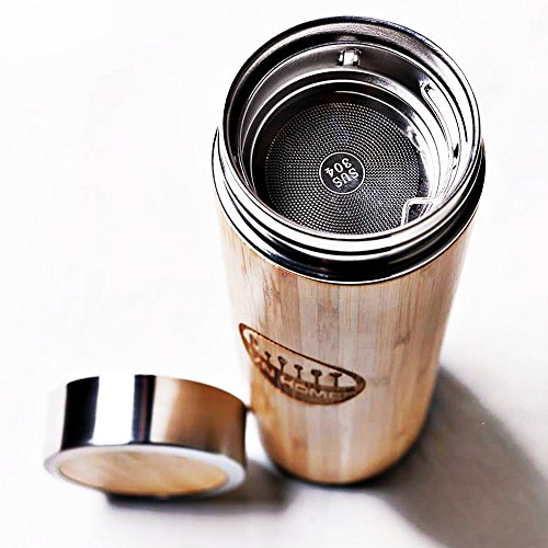 VNHOME PRODUCTS - DESIGNED TO STAND OUT ? Add a touch of nature to your life and working space and get complimented for your ECO choice. The bamboo exterior is so stylish, eco-friendly. VNHOME Travel Tea Thermos for hot and cold beverages, 16.5-ounce capacity is the ideal size for you and your whole family. It comes with removable stainless steel infuser, which is convenient to brew tea or coffee.? Besides, this hig- quality stainless steel insulated thermos is naturally BPA free and resists stains and smells of beverages so every sip of your drink is fresh and delicious. The bamboo thermos is the perfect size for any occasion-working, camping, exercising, hiking, boating, fishing. Take it with you anywhere from TODAY! You can use the thermos with ANY BEVERAGE as you wish. 0 |