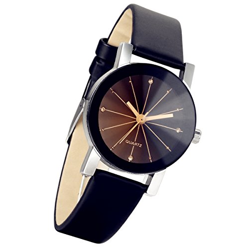 -. Title : Lancardo Women'S Black Round Dial Clock Leather Strap Quartz Wrist Watch(Black, 2PCS)