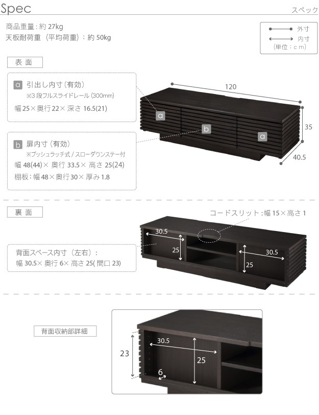 サイズ:幅120x奥行40.5x高さ35cm・約27kg