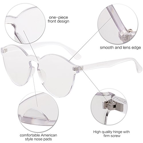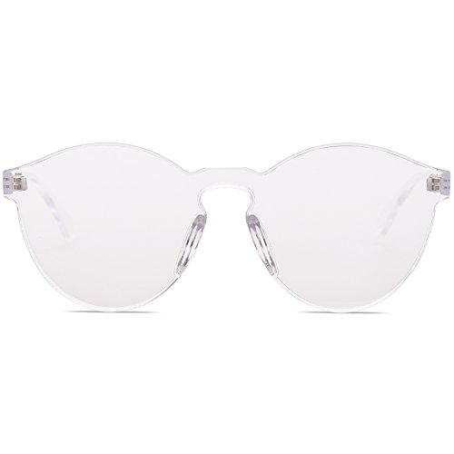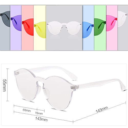 SYLTE – Cool one piece rimless transparent candy sunglasses, durable thick lens design, fashionable novel style. It is suitable for any face, and it can bring you a colorful mood in the hot summer.