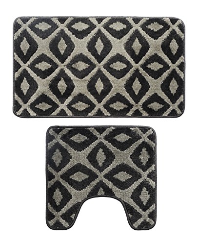 Attraction Design Bathroom 2 Pieces Bath Rug Pedestal Mat Set Contour and bath mat Grey