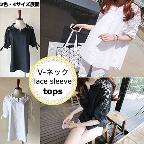 -. Title : ajaflowers(エージィアンフラワーズ) レース袖 セレブトップス 大きめサイズ あり エレガンス Vネック 五分袖 きれいめ デート お出かけ 2色 4サイズ展開 /aja-152