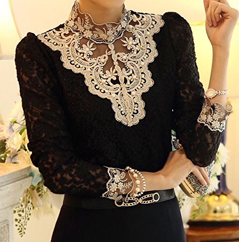 -. Feature : 【Religeuses】胸元の大きなレースがインパクト大のエレガントなブラウスです。インナーで脇役というより主役にしたい1枚です。 / フォーマルな感じにしたいけれど堅苦しいのは・・なんて時にとても重宝します。キチン感を演出してくれます。 / カラーは清楚で優しい雰囲気のベージュとバイカラーが個性的になるブラックの2色からお選びいただけます。 / 胸元・袖口がシースルーでボディー部分はやわらかにフィットする素材を使用しています。着心地がいいのもうれしい♡ / 【サイズ】L:着丈65㎝、バスト87㎝、袖丈59㎝、肩幅35㎝