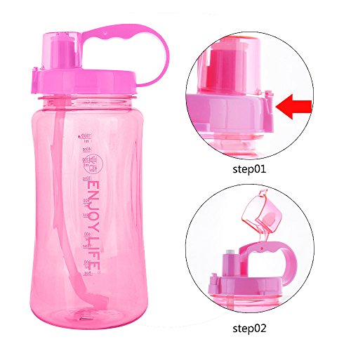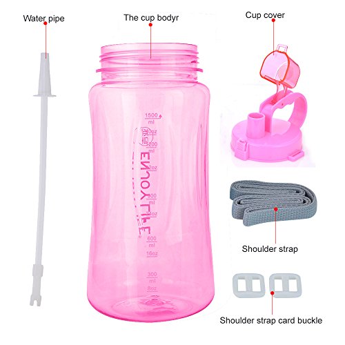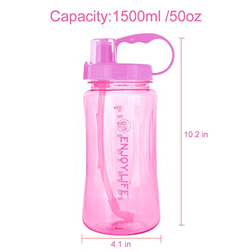 Large Water Bottle: Capacity 1.5L / 1500ml / 50oz. Can fill more water and ensure enough water for one adult a day.Its transparent with scale,good to make a plan to drink water every day.