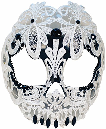 -. Brand : Forum Novelties -. ClothingSize : One Size -. Color : White / Black -. Department : womens -. EAN : 0721773737367 -. Feature : This white lace skull mask features black beaded detail and an elastic strap and is perfect for any Dia De Los Muerots or Mardi Gras ensemble! -. Label : Forum Novelties -. Manufacturer : Forum Novelties -. MPN : 73736 -. NumberOfItems : 1 -. PackageQuantity : 1 -. PartNumber : 73736 -. ProductGroup : Apparel -. ProductTypeName : ADULT_COSTUME -. Publisher : Forum Novelties -. Size : One Size -. Studio : Forum Novelties -. Title : White Lace on Black Skull Eye Mask -. UPC : 721773737367