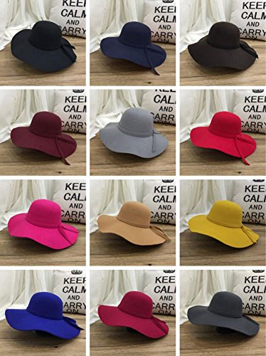 | (Ealafee)/Accessories/Hats/DIRECT FROM USA/Ealafee Women's Classic Solid Color Wool Blend Wide Brim Floppy Beret Fedora Hat |