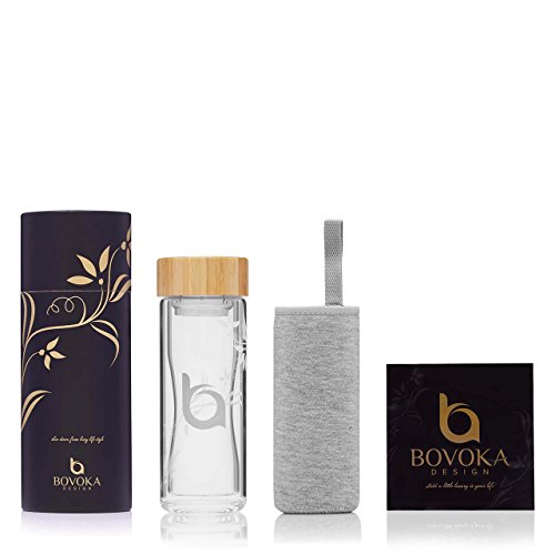 - FRESH BREWED TEA WHEREVER YOU ARE: With the Bovoka tea and coffee travel mug, you can have fresh, delicious tea in your home, car, office, or while traveling. This double-walled, glass tumbler has a removable strainer that sits in the bottle to hold your favorite loose leaf tea. Just pour hot or cold water in the glass container, attach the tea tumbler diffuser with the tea into the top of the thermos, and let steep for desired flavor. It takes only moments to prepare and you can take it to go.
