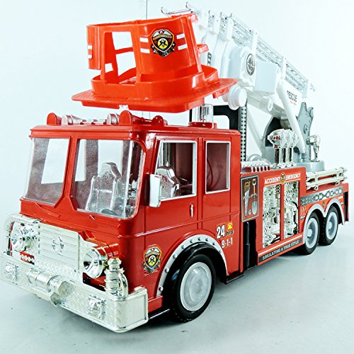 -. Feature : 13" R/C Radio Control Fire Truck w/Lights & Siren / Best Ever Gift for Boys Made Of nice Quality Plastic / Full Function R/C Forward. Reverse, Left, Right / 30 feet range Durable Plastic And Crash Resistant / 360 degree rotating manually Extendable Ladder