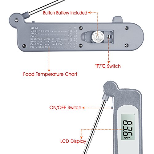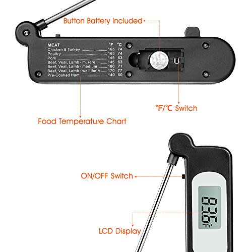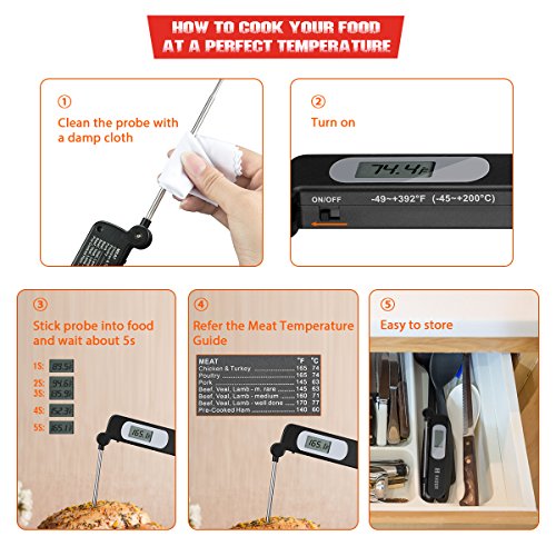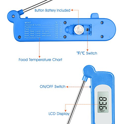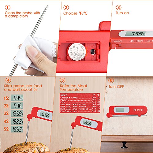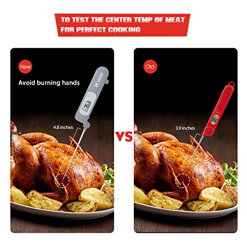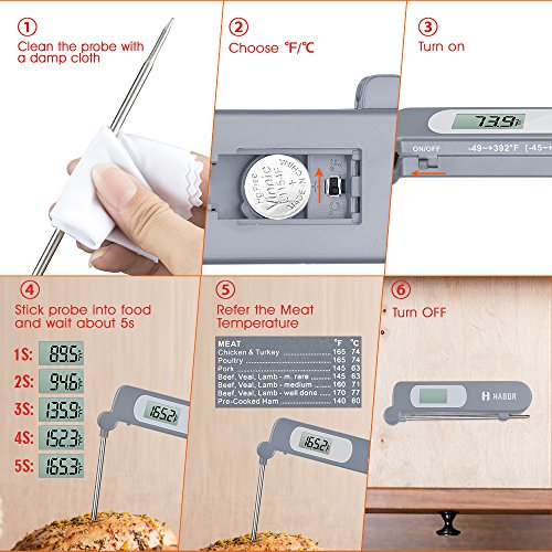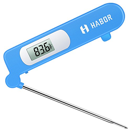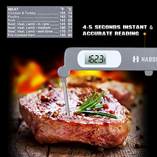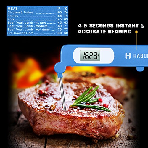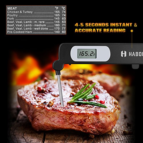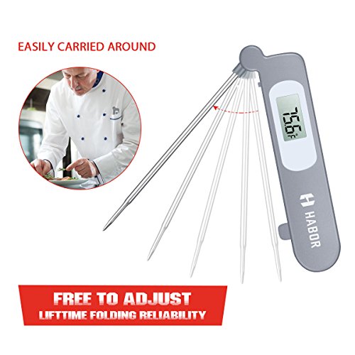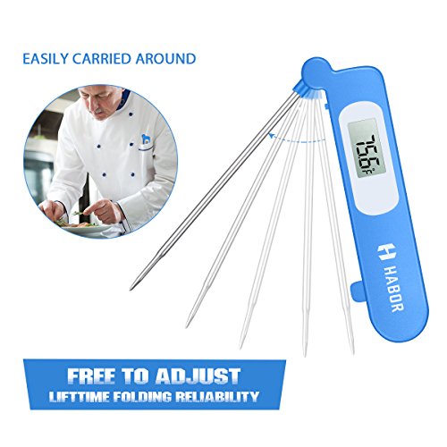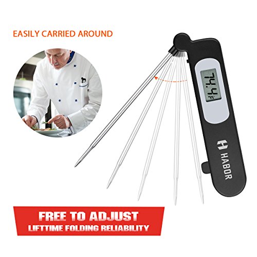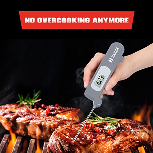 Habor Instant Read Meat Thermometers, Super Fast Accurate Cooking Thermometer Electronic Kitchen Thermometers with Digital LCD, Fordable Long Probe for Food, Candy, Milk, Tea, BBQ Grill Smokers