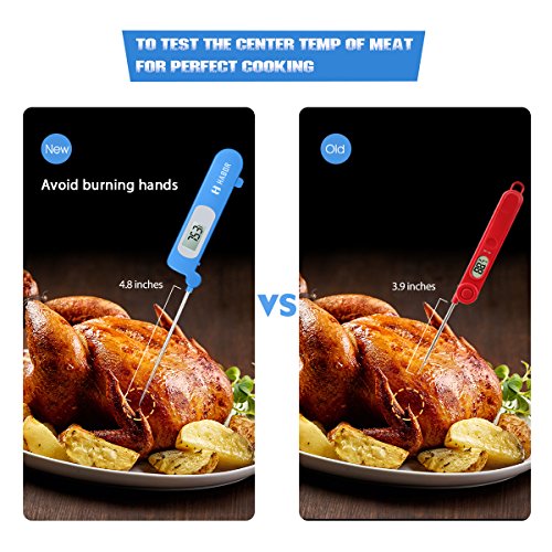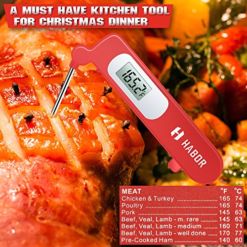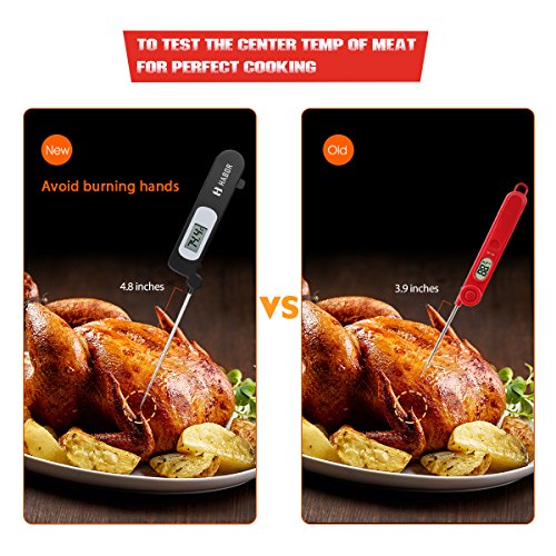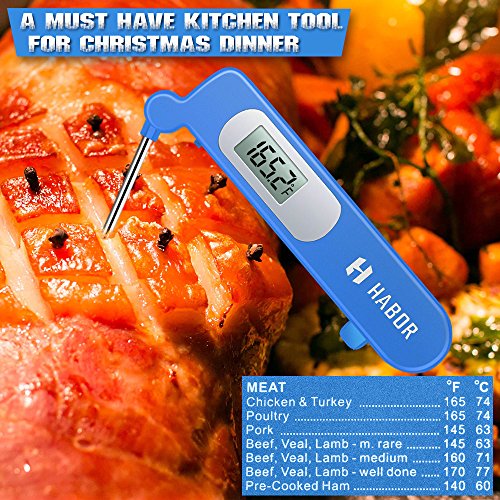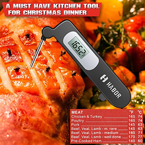 Habor Instant Read Meat Thermometer, Accurate Cooking Thermometer Electronic Kitchen Thermometer with Digital LCD, Fordable Long Probe for Food Christmas Turkey, Candy, Cake, Milk, BBQ Grill Smokers