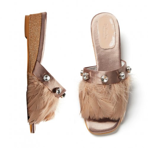 은은한 광택감의 새틴소재와 리얼깃털로 백조의 날개모양을 연상 시키는 로맨틱 스타일의 뮬입니다.