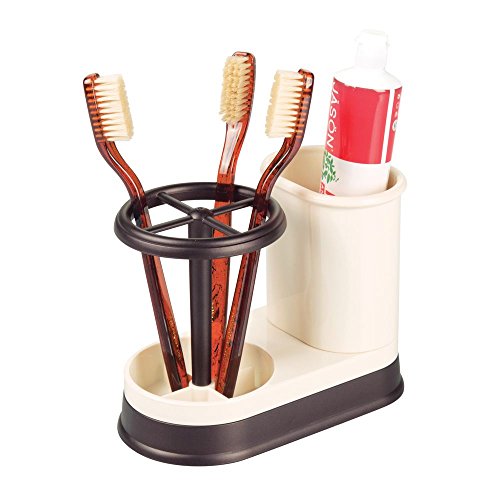 InterDesign York Bathroom Toothbrush and Toothpaste Stand/Holder and Organizer – Vanilla/Bronze