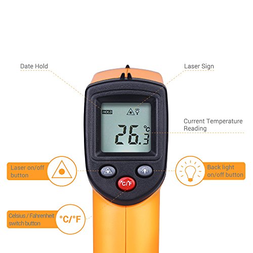 TEMPERATURE RANGE in CELSIUS AND FAHRENHEIT: -50°C to +380°C /-58 °F to +716°F; Accuracy: ±1.5% or ±1.5℃.A built in Laser gives you the precision to hone in on the exact space you want to measure.