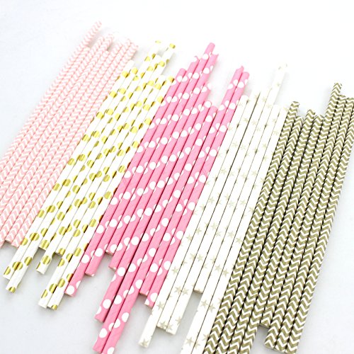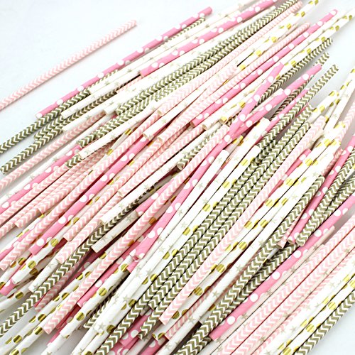 -. Title : Zicome 125pcs Biodegradable Paper Straws, Pink and Gold
