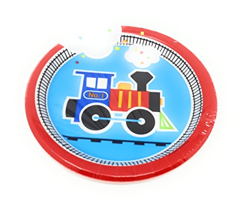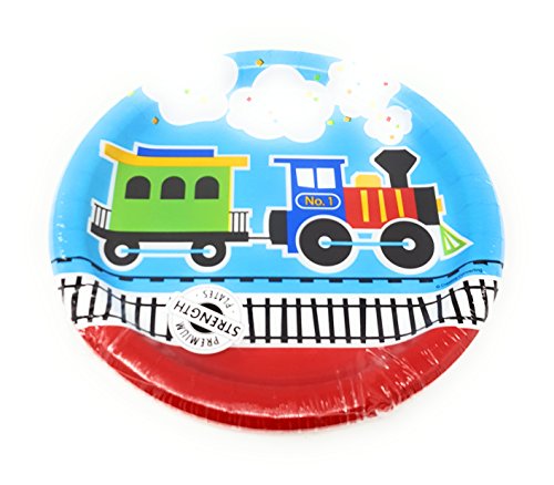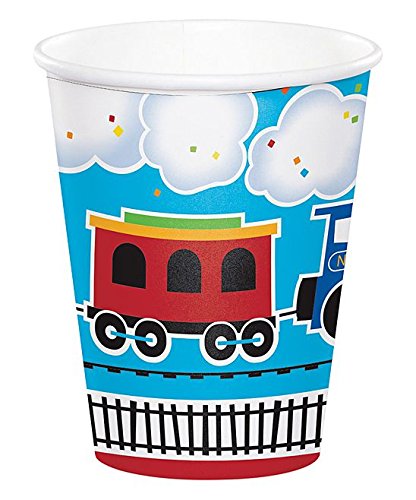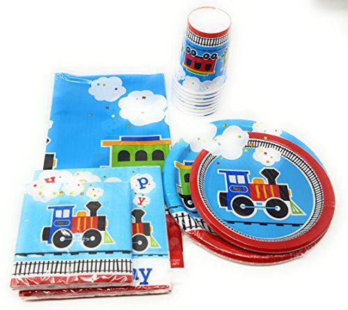 - “All Aboard!” Choo Choo Train-themed bundle includes: 8 dinner plates, 8 dessert plates, 16 napkins, 8 hot/cold cups. Everybody will love these cool, colorful, popular party supplies for your child’s birthday party! This an inexpensive way to transform tables and make cleaning up quick and easy!