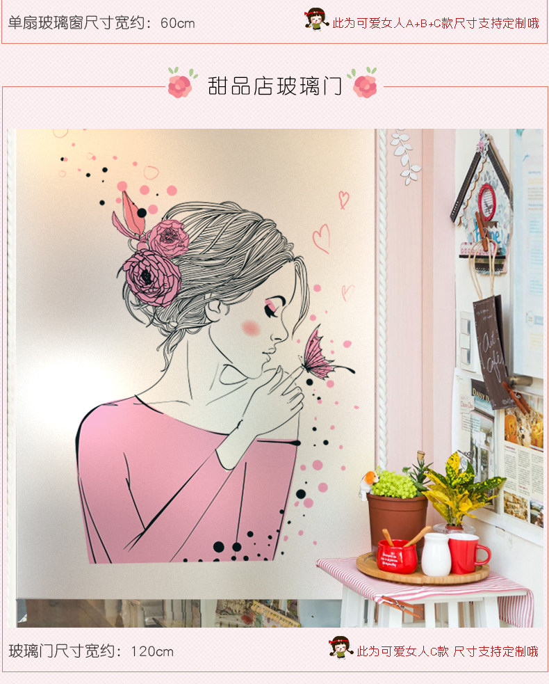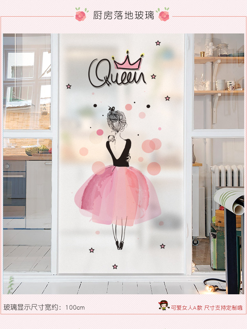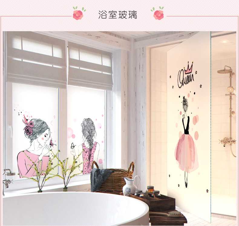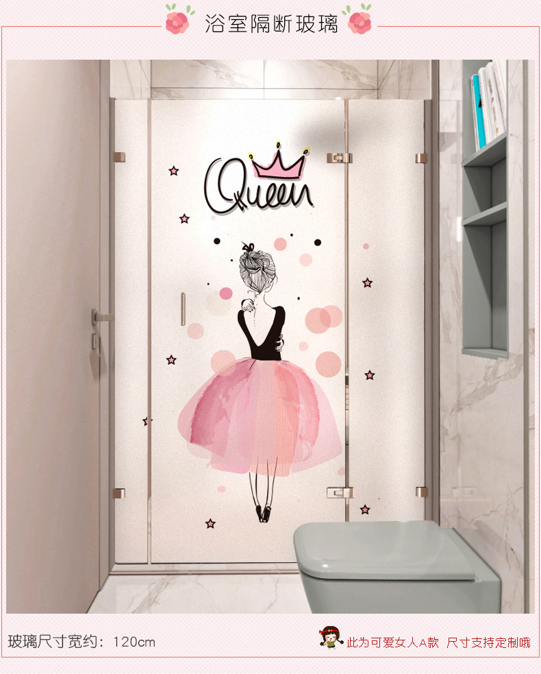可爱女人磨砂玻璃贴纸透光不透明贴膜静电贴厕所窗户贴纸卫生间