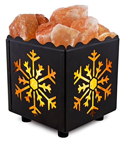 CRYSTAL DECOR Natural Himalayan Salt Lamp in Snowflake Design Metal Basket with Dimmable Cord
