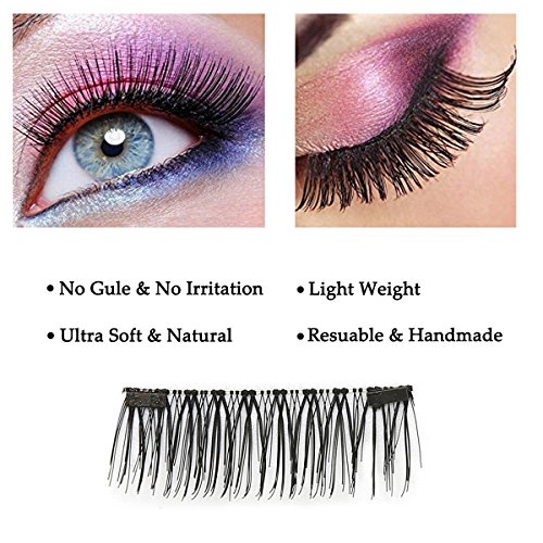 -. Feature : Magnetic Lashes, Minyee [New Version] Dual Magnetic No Glue Fake Eyelashes, Natural 3D Reusable False Magnet Eyelash, Ultra-Thin Handmade Lash [1 Pair/4 Pieces]