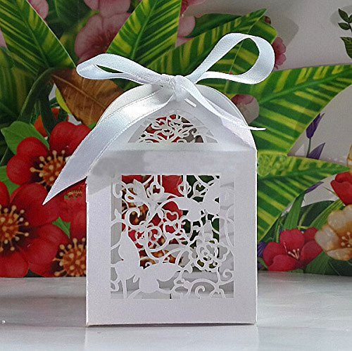 Saitec ® 50 Laser Cut Butterfly and Flower wedding party favor box in pearlescent candy box,party show gifts,paper box for wedding