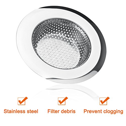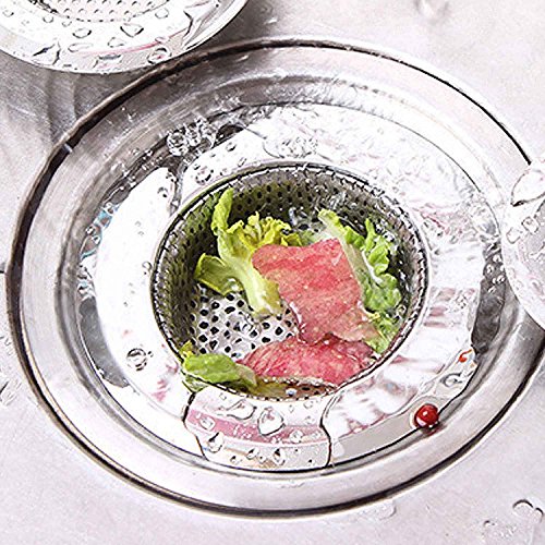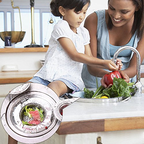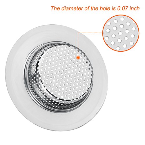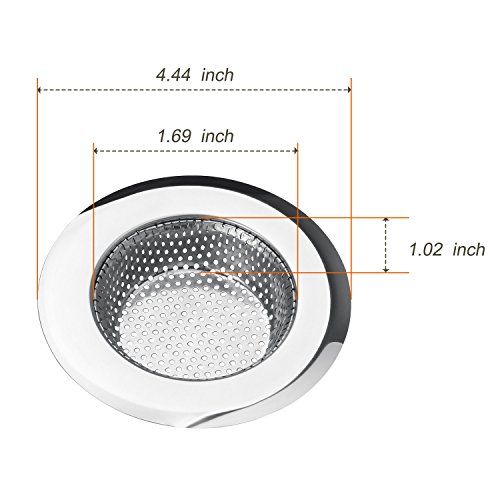 - Almost universal size: ISUDA stainless steel sink strainer are well manufactured to fit most sink drains and garbage disposals,which boasts 1.69 inch diameter bowl with 1" depth, a built-in sink protector! Ideal as well as drain catcher & bathroom sink strainer.