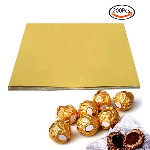 BAKHUK 200pcs 3.15" Square Gold Aluminium Foil Paper Wrapping Paper for Packaging Candies and Chocolate