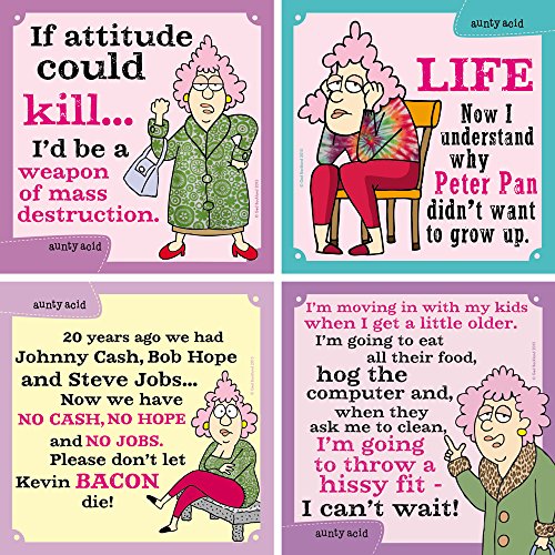 Tree-Free Greetings Hilarious Aunty Acid Magnet 4 Piece Set, 3.5 x 3.5 Inches, Don't Grow Up Magnets (FM31143)
