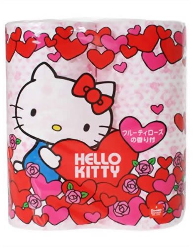 "Print Roll Hello Kitty Fruity Rose Scented 4 Rolls" is a soft touchy toilet paper (double).