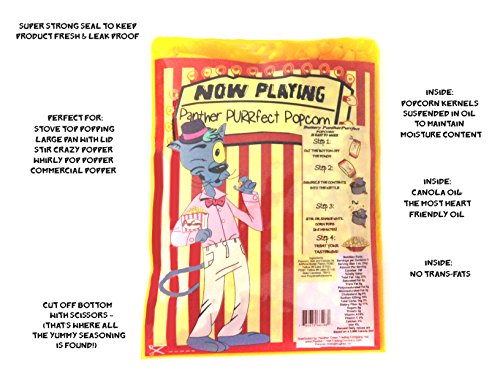Panther PURRfect Popcorn is Made in the USA with heart-friendly Canola oil. No trans-fats. Super stay-fresh, leak proof package keeps your premium popcorn fresh