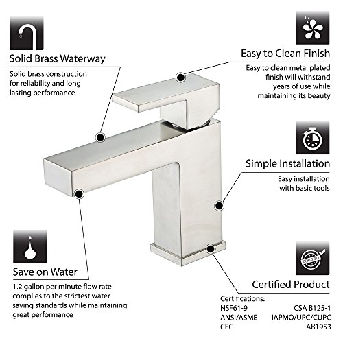 Decor Star BPC05-SB Single Handle Hole Bathroom Vanity Sink Lavatory Faucet cUPC NSF AB 1953 Lead Free Brushed Nickel
