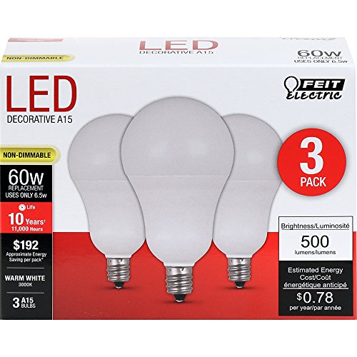 Feit Electric A1560C/10KLED/3 60W Equivalent Frost Non-Dimmable Candelabra Base LED Light Bulb (3 Pack), Warm White