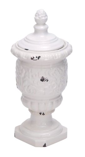 Plutus Brands Beautiful Ceramic Jar with Intricate Detailing and White Finish