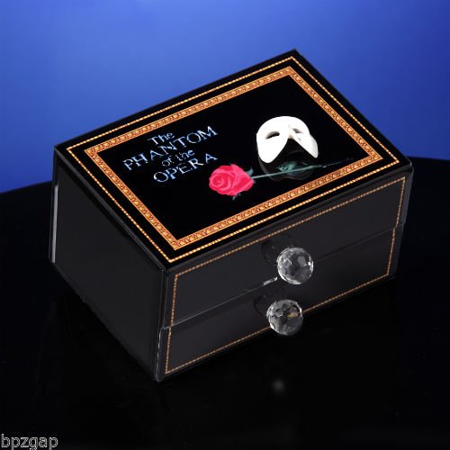 Phantom of the Opera Mask and Rose Glass Musical Drawer Box